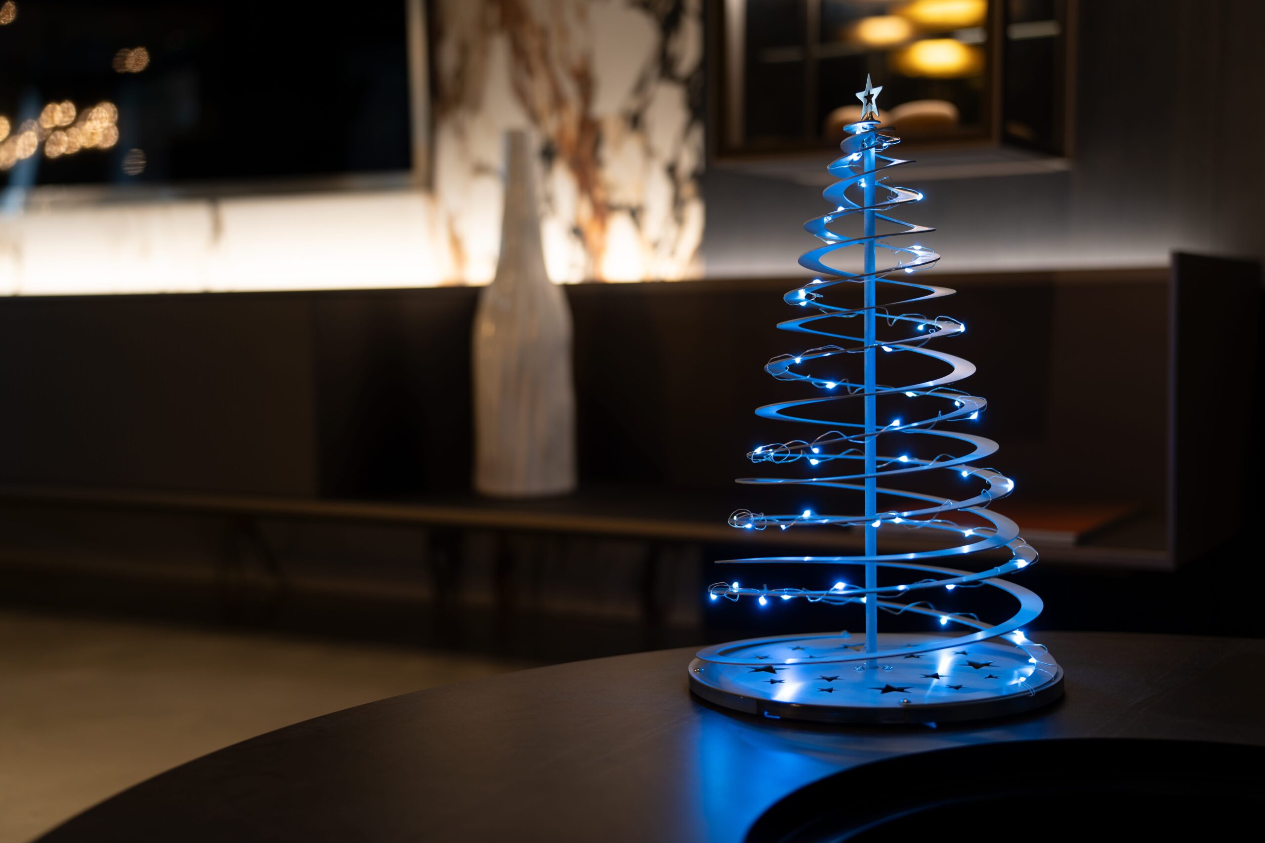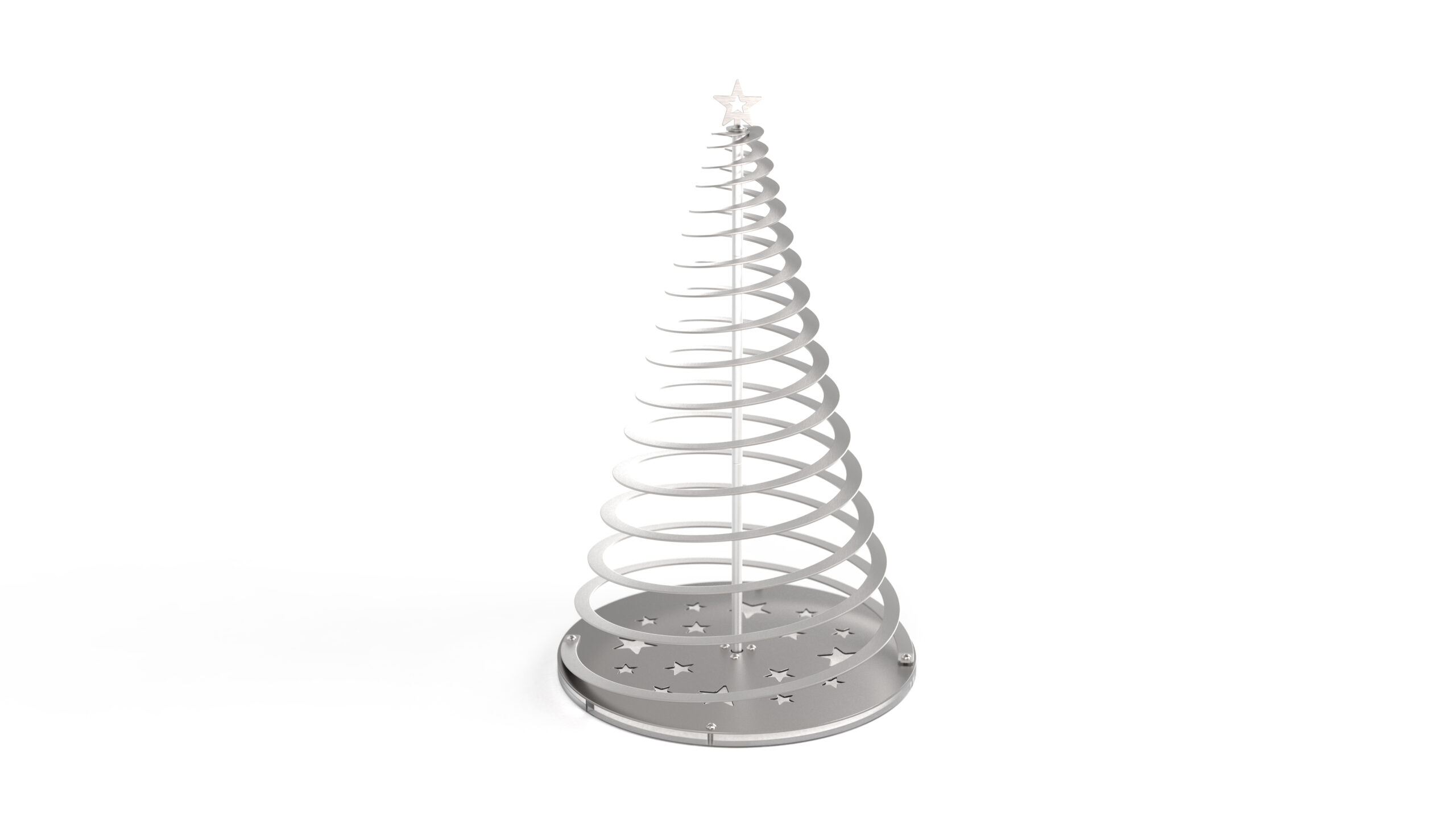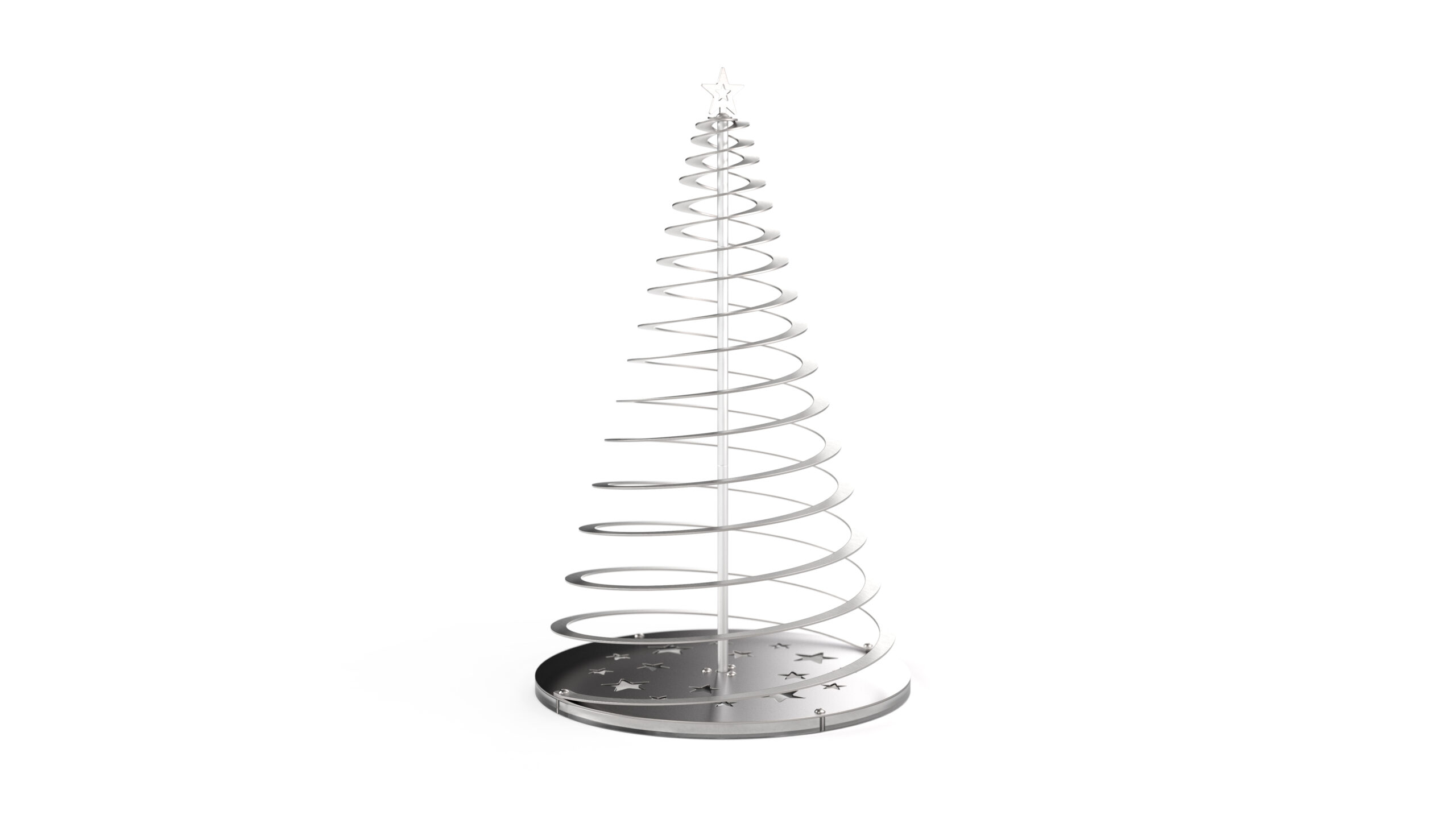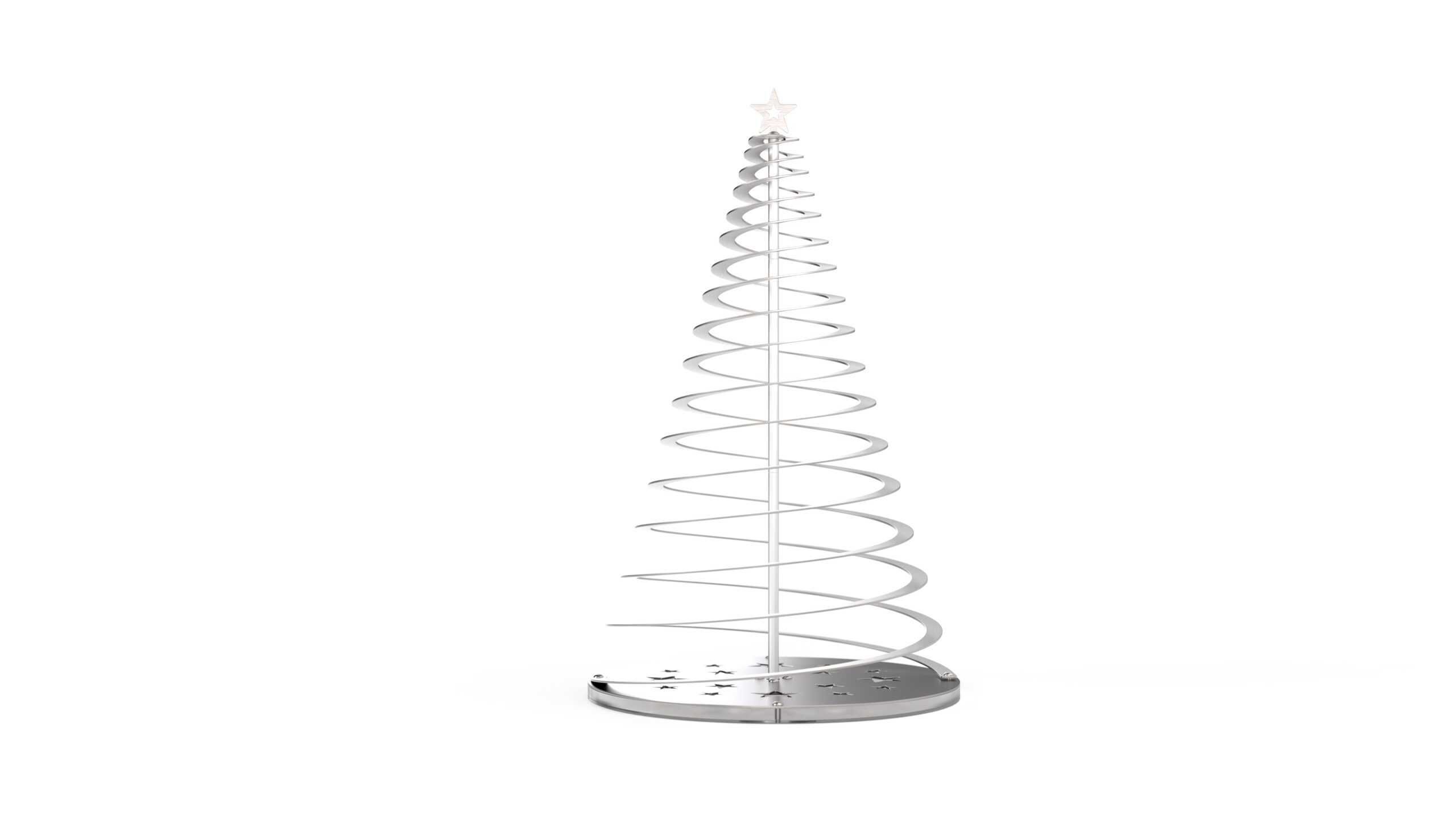 L’albero viene fornito premontato chiuso, per aprirlo occorre svitare le 3 viti svasate sul fondo della base e aggiungere i 2 steli e riavvitare il tutto, successivamente sagomare le spire a piacimento.